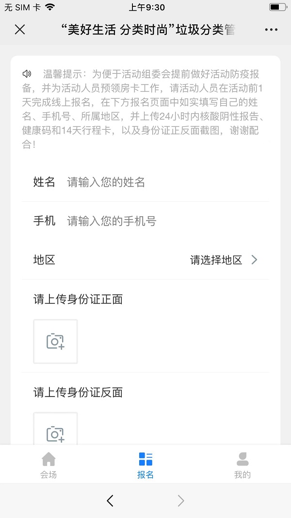 報(bào)名輸入姓名手機(jī)號(hào),可以選擇地區(qū),并上傳身份證圖片等。
