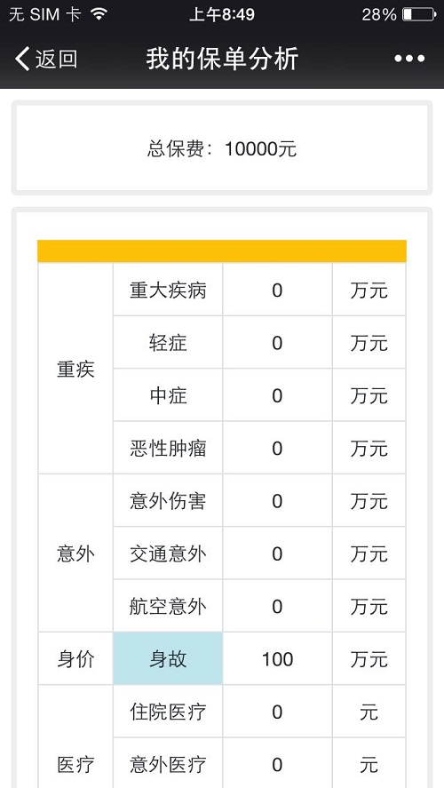 公眾號(hào)我的保單包括保單列表和保單分析。
