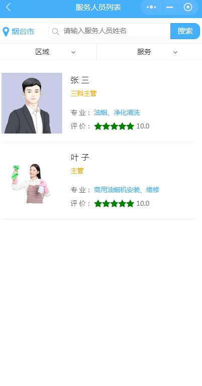 點(diǎn)擊服務(wù)人員,即可選擇服務(wù)地區(qū),服務(wù)人員,服務(wù)類型的所有信息。