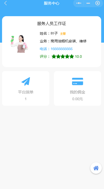 服務(wù)中心審核通過后可以查看自己的評(píng)分,派單和余額情況等信息。
