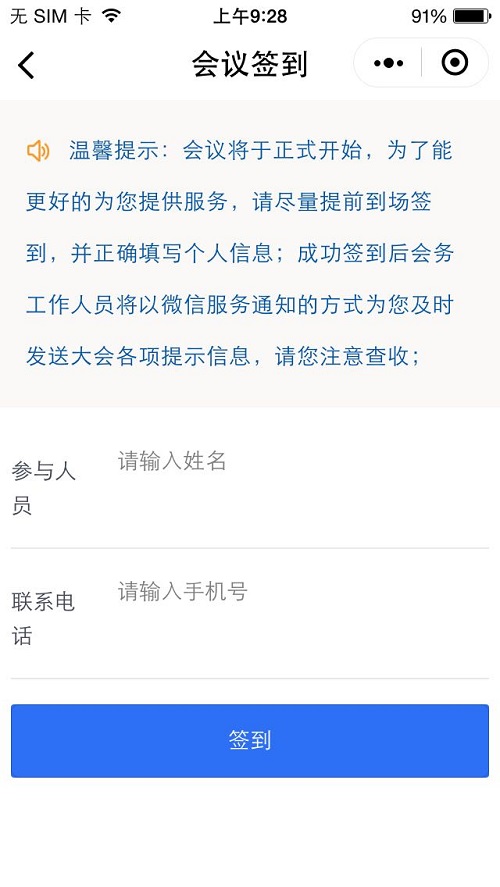 會議簽到,正確填寫個人信息,填寫參會員名字和聯(lián)系電話。
